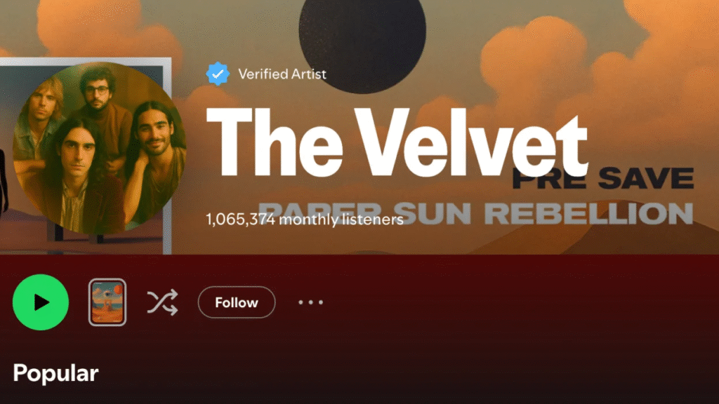 Within a month of their June 2025 debut, The Velvet Sundown had crossed one million monthly Spotify streams.